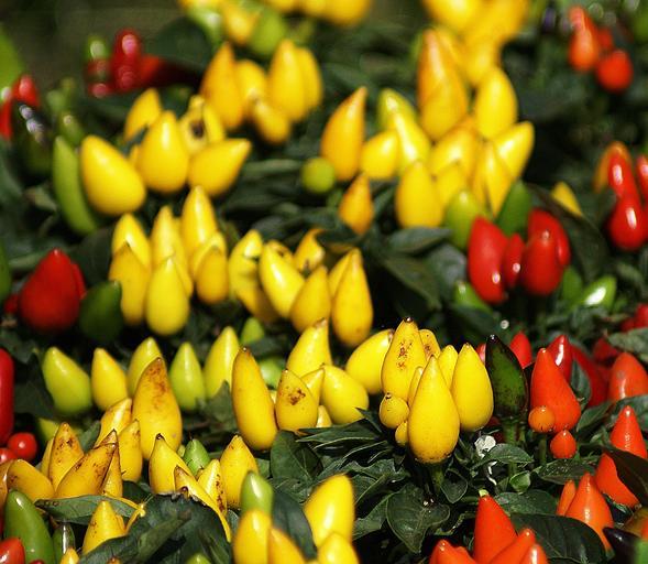 Keywords: peppers paprika fruit fruiting a collection of cayenne pepper red yellow fancy potted food spice gardening small peppers sunny juicy spicy the cultivation of