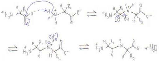 Keywords: Peptide Bond Mechanism.jpg en Mechanisms for the Chemical Reaction of the formation of peptide bonds own Bruby 2009-09-17 Peptide bond Reaction mechanisms Protein biosynthesis