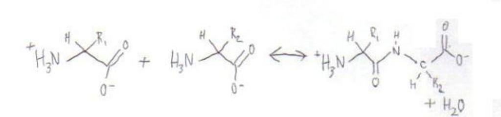 Keywords: Peptide Overall Reaction.jpg en Overall Chemical reaction of the formation of a Peptide BOnd own Bruby 2009-09-17 Peptide bond Protein biosynthesis