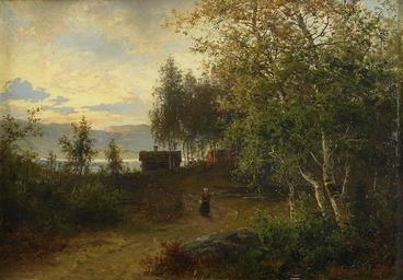 MAKE A MEME View Large Image Per Daniel Holm - Norrländskt kustlandskap med kvinna på väg.jpg Norrländskt kustlandskap med kvinna på väg Per Daniel Holm 1835-1903 Swedish painter 1864 oil canvas cm 23 33 5 Auktionsverket Stockholm Public domain 1860s landscape ...