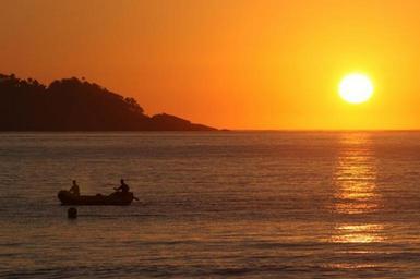 Keywords: per of sol sunset mar water ocean boat fisherman mountains forest afternoon dusk