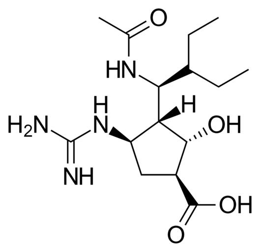 Keywords: Peramivir.svg Skeletal formula of peramivir Created using http //www acdlabs com/download/chemsk html ACD/ChemSketch 10 0 Inkscape and vim Own work after cite journal World Health Organization International Nonproprietary Names for Pharmaceutical Substances INN Proposed INN List 86 WHO Drug Information 16 1 55 2002 http //whqlibdoc who int/druginfo/16_1_2002_INN86 pdf 2009-04-24 Fvasconcellos Neuraminidase inhibitors Acetamides Guanidines Carboxylic acids Cyclopentanols