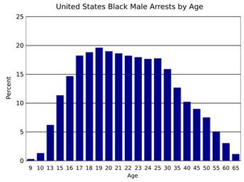 | Keywords: Percent of US black males arrested by age.svg translate yes en Arrests in the United States of black males in 2014 by age Almost twenty percent of young blacks are arrested each year per capita more than twice as many as whites Estimated from the age distribution of black males in the United States 12 8 and the percentage of blacks arrested 32 6 under 18 27 1 over 18 and the age distribution of arrests Data from https //www fbi gov/about-us/cjis/ucr/crime-in-the-u s/2014/crime-in-the-u s -2014/tables/table-39 UCR 2016-05-22 own Delphi234 other versions cc-zero Arrest statistics for the United States Black Lives Matter Political bar charts SVG bar charts Histograms |