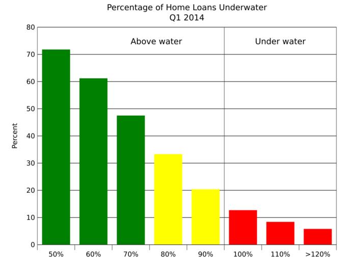 | Keywords: Percentage of US Home Loans Underwater Q1 2014.svg translate yes en Percentage of United States home loans underwater 1st quarter 2014 http //www corelogic com/about-us/news/corelogic-reports-312 000-residential-properties-regained-equity-in-q1-2014 aspx The x axis is loan to value LTV 2016-08-11 own Delphi234 other versions cc-zero Mortgage crisis |
