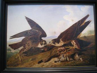 | Keywords: Peregrine Falcons (Duck Hawks), by John James Audubon.jpg en Peregrine Falcons Duck Hawks Institution Cleveland Museum of Art oil on canvas 64 50 x 91 50 cm 25 3/8 x 36 inches own ; I took this photograph in July 2008 http //www clevelandart org/collections/collection 20online aspx type refresh csearch Artist 20/ 20Maker John 20James 20Audubon Museum's web site record Creator John James Audubon c 1827 Public domain<br>There were no prohibitions against photography in the museum PD-old-100 Peregrine Falcons in art Oil paintings by John James Audubon American paintings in the Cleveland Museum of Art 1820s paintings in the United States Oil paintings of birds |