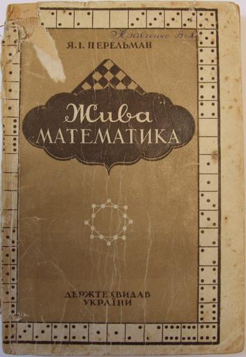 | Keywords: Perelman-UA-1948.jpg  Титульна сто інка обкладинки книги Жива математика Я І Пе ельман 1948 Власне фото Я І Пе ельман - Де жавне видавництво технічної літе ату и Ук аїни Київ 1948 Львів PD-Old-70 Original upload log File was transfered from Ukrainian Wikipedia using UWCTransferBot v 1 3 based on Chris G's http //toolserver org/~chris/highlight php d chris/classes/ f botclasses php botclasses framework uk wikipedia Perelman-UA-1948 jpg 2013-07-18 09 28 AndrijKo 2392×3472×8 3996250 bytes <nowiki> Обґ унтування доб опо ядного вико истання Опис Титульна сто інка обкладинки книги Жива математика Я І Пе ельман Дже ело </nowiki> Book covers from Ukraine Book covers in Ukrainian |