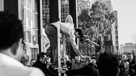 Keywords: performer entertainment stage people perform live event audience street artist melbourne street male guy attraction casual