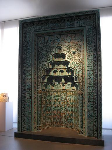 | Keywords: Pergamon Museum Berlin 2007133.jpg Gebetsnische mit Thronvers Koran Sure 2 Vers 255 Türkei Konya 3 Viertel 13 Jahrhundert Aus der Beyhekim Moschee Fayencemosaik Inv -Nr 1 7193 Museum für Islamische Kunst Berlin A ceramic Muqarna with Arabic calligraphy an Islamic architectural element from Ottoman era Turkey In the Museum für Islamische Kunst Berlin Own 2007 Gryffindor Image may be used for any purpose Museum für Islamische Kunst Berlin - Mihrab Konya | ||||