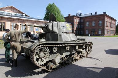 | Keywords: Perinnepanssariosasto T-26 Lippujuhlan päivä 2014 1.JPG en Heritage tank unit T-26 light tank Ps 164-32 possibly OT-133 flame tank later fitted with gun turret during the Finnish military Flag Day 2014 in Lappeenranta Rakuunamäki fi Perinnepanssariosaston T-26 panssarivaunu Ps 164-32 mahdollisesti OT-133 liekinheitintankki tykkitornilla varustettuna puolustusvoimain lippujuhlan päivänä 2014 Lappeenrannan Rakuunamäellä own MKFI 2014-06-04 Flag Day of the Finnish Defence Forces 2014 T-26 Model 1939 light tanks in Finnish service Taken with Canon EOS 60D Taken with Canon EF-S 15-85mm F3 5-5 6 IS USM Files by User MKFI |