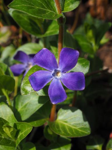 Keywords: periwinkle flower blossom bloom purple violet vinca dog gift greenhouse apocynaceae small periwinkle vinca minor ground cover toxic semi shrub chamaephyt creeping subshrub cone flower petals corolla carpels