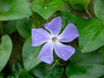 Keywords: periwinkle flower vinca major blossom plant garden leaves green bloom macro groundcover