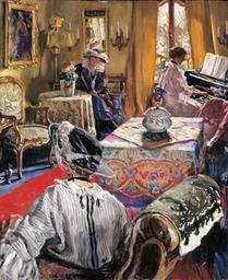 | Keywords: Perlmutter Salon 1910s.jpg Artwork Creator Izsák Perlmutter s 1910 Oil on canvas Size cm 85 105 Institution Gábor Kovács Art Collection Budapest object history exhibition history credit line bottom left ND accession number 000309 http //www gaborkovacsartcollection com/ Gábor Kovács Art Collection http //www gaborkovacsartcollection com/artworks/perlmutter-izsak/salon Info http //www gaborkovacsartcollection com/sites/default/files/imagecache/art_node_600/art/upload/000309_s jpg Pic PD-old-70 Versions of this painting <gallery> File Perlmutter Salon 1910s jpg Gábor Kovács Art Collection Oil on canvas s 1910 File Perlmutter In the Salon jpg Hungarian Jewish Museum and Archives Oil on cardboard </gallery> Paintings by Izsák Perlmutter Paintings in the Gábor Kovács Art Collection Budapest 1910s paintings in Hungary |