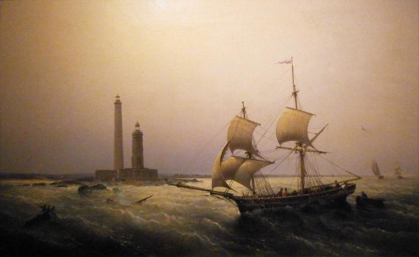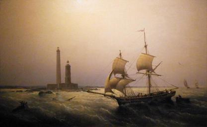 | Keywords: Perot, Ferdinand - Le Phare de Gatteville.jpg 1839 oil on canvas Musée maritime de Tatihou conseil général de la Manche accession number object history credit line Exposition Visions romantiques des côtes de la Manche 2/12/2011 - 26/02/2012 Institution Musée Thomas-Henry Cherbourg own HaguardDuNord <span class signature-talk >talk</span> 2011-12-22 PD-Art Gatteville lighthouse Sailing ships in art Two-masted ships | ||||