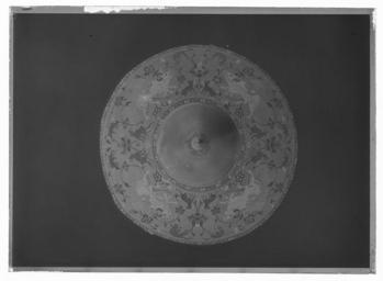 | Keywords: Persisk sköld, kalkan, 1500-talets slut. Förmodat krigsbyte från Prag 1648 - Livrustkammaren - 69021-negative.tif Rund sköld uppbyggd av 42 stycken synliga ringformade vidjor av fikonträ lindade och broderade med silkestråd i rött grönt gult svart grått och vitt <br/>All kanttråd fäst i längs fiberriktningen rakt dragna skåror i träet Kanttråden till alla figurer och ornament fästad på detta sätt möjligen även den röda bottentråden <br/>Yttersta ringen med dekor av parvis oregelbundna ornament i rött mellan dessa rektangel i svart med i mitten likarmat kors i vitt Detta mot botten i gult Nästa ring helt i grönt Därefter större fält med djur över slingrande växter Fyra större grupper av oxe i svart med vita horn och ögon bakifrån attackerad av panter i grått med vita ögon och klor Mellan dessa två olika grupper av i mitten stiliserad växt med i de fyra hörnen ett hunddjur vid sköldens inre kant sittande och mot yttre kanten i rörelse Hundarna i gult med svart kant vita ögon och i vissa fall svarta öron Grupperna skiljer sig åt genom djurens utseende och detaljer Av totalt 16 djur saknar tre helt ifyllda detaljer i svart De tre översta ringarna närmast sköldbucklan är heltäckande grön gul med dekor som nertill och heltäckande grön Då sköldbucklan sitter snett kan även en ytterligare heltäckande röd ring ses från ett håll <br/>Undersida av grön sammet I kanterna fyra rostbruna metallöglor på konturerad stålplatta Mot ena sidan två liknande och tätare placerade öglor mellan dem ett flätat snöre av grön silkestråd med i ena änden tofs <br/>I mitten fyrkantig stoppad kudde puta av röd sammet 185 x 195 mm Undersidan klädd med ett ljusare rött tyg än ovansidan I varje hörn genom putan en fästad ögla med snöre i orange och blått Snörena möts och är fäsade i en lös ring över kuddens mitt <br/><br/>Sköldbuckla rund och välvd i stål diam ca 140 mm h ca 90 mm I yttre kant dekorativt band av förvanskade arabiska skrivtecken b 11 mm Upptill avslutad med rund knopp diam nertill 34 mm h 38 mm Svagt avsmalnande uppåt med konisk topp Runt knoppen 19 mm brett band av arabesk Sidorna med dekor av samma förvanskade skrivtecken som tidigare Den koniska toppen täckt med arabesk All dekor av påslaget guld mot mörk botten Fäst i nederkantkant med fyra mässingsstift <br/><br/>Förgyllda och dekorativa ornament sammanlagt tio stycken sex längs nedre kant och fyra runt bucklan Konturerade kanter med i mitten åttbladig blomma mot prickpunsad botten diam 19 mm Ornamenten utgör fästen för öglorna på sköldens baksida original caption Erövringen av Prag century 16 steel - velvet Färg grön röd material sammet size mm 595 size mm 250 mittplatta ca LRK Kristina av Sverige Abbas I Shah av Persien Rudolf II Tysk-romersk kejsare Persisk konst i Sverige 1973 Livrustkammarens basutställning 1978 Islamiskt i de kungliga samlingarna 1984 Kungens lockpipa 1995-1996 Sweden and Europe 1632-1792 2003-2004 Krigsbyte 2007-2008 Basutställning place of origin original filename LN_B02478_005358 47190 inventory number LRK 10607 69021 CC0 Persisk sköld kalkan 1500-talets slut Förmodat krigsbyte från Prag 1648 - Livrustkammaren - 69021 tif <gallery caption Different images of same object > File Persisk sköld kalkan 1500-talets slut Förmodat krigsbyte från Prag 1648 - Livrustkammaren - 60812 tif File Rörsköld - Kalkan - Livrustkammaren - 60063 tif </gallery> Shield images from Livrustkammaren |