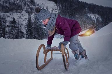 Keywords: person human child girl slide toboggan winter snow cold twilight childhood out nature