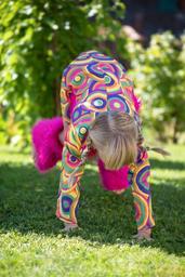 Keywords: person human child girl blond braids in motion in action gymnastics colorful garden out summer fun meadow