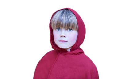 Keywords: person human child girl blond rotkäppchen fairy tale cape red face portrait close free