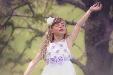 Keywords: person human child girl dress face blond long hair dance in motion nature out portrait