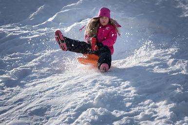 Keywords: person human child girl bob ride on slip downhill fun in motion in action winter snow winter fun joy