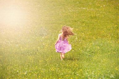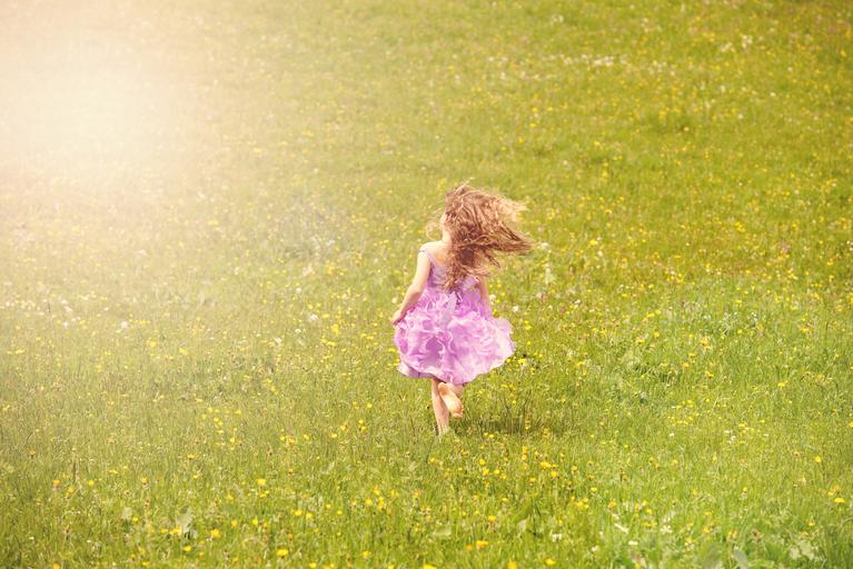 Keywords: person human child girl blond long hair dress run meadow flower meadow out nature