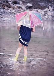 Keywords: person human child girl water wet splashing rubber boots screen out nature portrait