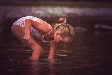 Keywords: person human child girl swim splashing water badesee natural lake evening twilight nature portrait