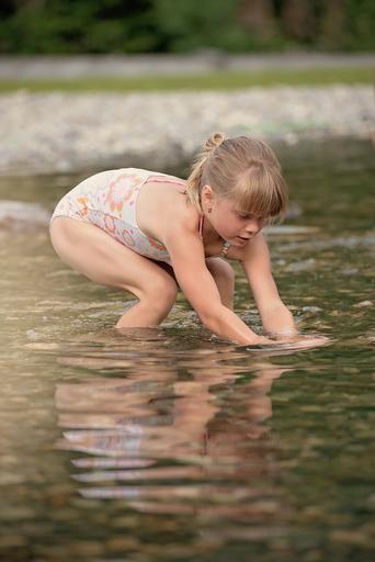 Keywords: person human child girl water badesee splashing swim natural lake out nature portrait