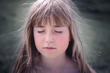 Keywords: person human female girl blond long hair face eyes closed wind enjoy out portrait close