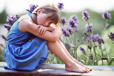 Keywords: person human female girl blond bank flower meadow garden nature in thoughts thoughtful portrait out