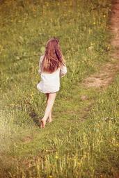 Keywords: person human female girl away meadow nature out walk run long hair green summer