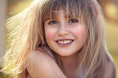 Keywords: person human female girl face pretty smile eyes hair long hair portrait close wind summer cheerful