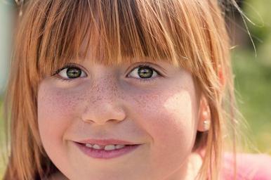 Keywords: person human girl face smile red head freckles portrait close