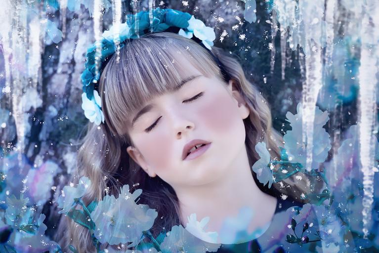 Keywords: person human girl female ice princess beautiful face pretty eyes closed portrait close