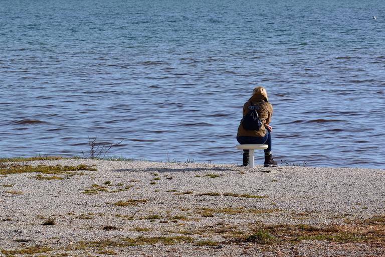 Keywords: person individually water lake waters sit nature human mood woman look rest relax recovery leisure quiet longing