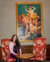 Keywords: person people woman female happy portrait smiling italy painting antique furniture white adult caucasian healthy looking