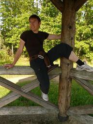 Keywords: person rest sit man human break walk hiking rest house bar wood cozy tired rested