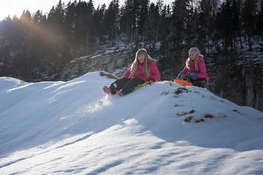Keywords: personal human children girl winter snow sunshine ride on bob slip downhill winter fun fun in motion in action