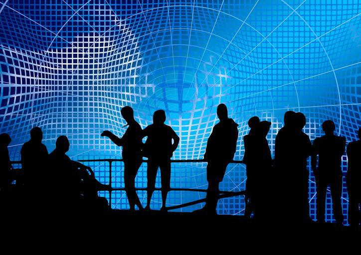 Keywords: personal silhouettes human woman man group shadow shadow play people together community team entertainment discussion talk railing background viewing