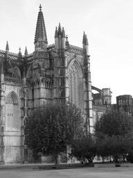 Keywords: perspective building structure spires exterior architecture portugal lisbon gothic arches old building classical historical historic outside black and white