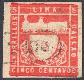 | Keywords: Peru 1870 Sc19 used.jpg en Peru 1870 used 20th anniversary of the first railway in South America linking Lima and Callao All catalogues get the issue date of the Trencito wrong Julian Lugo believes it was issued in April 1870 This is backed by expertly certified and acknowledged covers ru П ошедшая почту железнодо ожная ма ка Пе у 1870 Скотт 19 Гашение почтовым штемпелем чё ного цвета Catalogue Sc 19 1870-04 own scan Post of Peru other versions Custom license marker 2016 06 27 PD-old-100 Stamps of Peru 1870 stamps Red stamps Trains on stamps Railway stamps |
