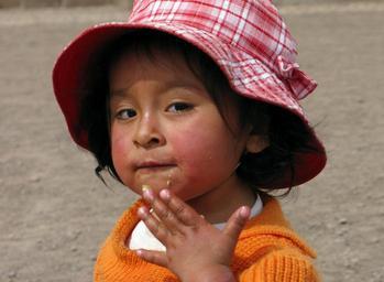 Keywords: peru cusco child girl hat peruvian eat