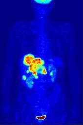 | Keywords: PET-MIPS anim frame.PNG en Maximum Intensity Projection MIP of a wholebody positron emission tomography PET acquisition of a 79 kg weighting female after intravenous injection of 371 MBq of <sup>18</sup>F-FDG one hour prior measurement The investigation has been performed as part of a tumor diagnosis prior to applying a radiotherapy tumor staging step Besides normal accumulation of the tracer in the heart bladder kidneys and brain liver metastases of a colorectal tumor are clearly visible within the abdominal region of the image de Maximumintensitätsprojektion MIP einer Ganzkörperaufnahme mittels Positronen-Emissions-Tomographie PET Die Aufnahme zeigt eine 79 kg schwere weibliche Patientin nach intravenöser Injektion von 371 MBq <sup>18</sup>F-FDG eine Stunde vor Messung Die Untersuchung wurde im Rahmen einer Tumordiagnose vor Anwendung einer Strahlentherapie sogn Tumorstaging durchgeführt Neben den normalen Anreicherungen des Tracers in Herz Blase Nieren und Gehirn sind auch Lebermetastasen eines kolorektalen Tumor im abdominalen Bereich der Aufnahme auszumachen fr Projection d'intensité maximale MIP d'un corps entier par topographie à émission de positons TEP d'une femme de 79 kg après une injection intraveineuse de 371 MBq de <sup>18</sup>F-FDG une heure avant la mesure L'étude a été réalisée lors d'un diagnostic de tumeur avant d'appliquer une radiothérapie étape tumeur Outre l'accumulation normale du traceur dans le cœur la vessie des reins et du cerveau des métastases hépatiques d'une tumeur colorectale sont clairement visibles dans la région abdominale de l'image PET-MIPS-anim gif 2006-05-22 Jens Langner http //www jens-langner de/ Damato Positron emission tomography |