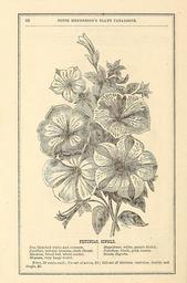| Keywords: Peter Henderson's spring catalogue of new, rare, and beautiful plants for 1872 (16435036411).jpg 44 <br> PETER HENDERSON'S PLAKT CATALOGUE <br> PETUNIAS SINGLE <br> Era blotched white and crimson <br> Excellent velvety crimson dark throat <br> Marmion blood red white centre <br> Magnum very large violet <br> Magnificent white purple blotch <br> Paladium blush pink centre <br> Striata Snperba <br> Price 50 cents each ; for set of seven 3 ; full set of thirteen varieties double and <br> single 5 42270075 133414 66376 Page 44 Text http //www biodiversitylibrary org/page/42270075 1872 10 5962/bhl title 66376 Henry G Gilbert Nursery and Seed Trade Catalog Collection ; Peter Henderson Co NameFound Paladium NameFound Striata NameConfirmed Striata NameBankID 4355926 Biodiversity Heritage Library Peter Henderson's spring catalogue of new rare and beautiful plants for 1872 greenhouses in Bergen District of Jersey City N J Post office address at seed store no 35 Cortlandt Street New York Garden Stories Catalogs Flowers Plants Plants Ornamental Seed industry and trade Seeds Trade catalogs U S Department of Agriculture National Agricultural Library bhl page 42270075 dc identifier http //biodiversitylibrary org/page/42270075 Single petunias bhlGardenStories BHLinbloom plants ornamental u s department of agriculture national agricultural library bhlgardenstories bhlinbloom Information field Flickr posted date ISOdate 2015-02-03 CC-BY-2 0 BioDivLibrary https //flickr com/photos/61021753 N02/16435036411 2015-08-24 05 53 42 cc-by-2 0 PD-old-70-1923 Peter Henderson's spring catalogue of new rare and beautiful plants for 1872 Photos uploaded from Flickr by Fæ using a script |