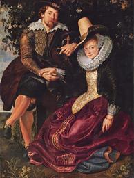 | Keywords: Peter Paul Rubens Peter Paul Rubens - The Artist and His First Wife, Isabella Brant, in the Honeysuckle Bower.korr.jpg Artwork Creator Peter Paul Rubens Geißblatt Jelängerjelieber war als Treuesymbol bekannt die ineinandergelegten Hände dextrarum iunctio deuteten seit der Antike auf den Ehestand hin Jedoch sind diese Verweise völlig in die lebensnahe Momentaufnahme integriert Bürgerliche Zufriedenheit beachtlicher Wohlstand tiefe Zuneigung der Eheleute kommen in dem Bild zum Ausdruck Directly after his return from Italy the 32 year old Rubens married the 18 year old Isabella Brant This double portrait which broke new ground in portrait painting was purportedly done shortly thereafter Rubens did not however give up using traditional symbolism Honeysuckle was a well known symbol for faithfulness and hands laid over one another dextrarum iunctio have symbolized matrimony since ancient times However these references are integrated into this snapshot-like scene in which middle-class contentedness substantial affluence and strong affection are expressed <ref>http //wayback archive org/web/20110606170051/http //www pinakothek de/peter-paul-rubens/rubens-und-isabella-brant-der-geissblattlaube Bayerische Staatsgemäldesammlungen</ref> reflist ca 1609/1610 Oil canvas panel cm 178 136 5 Institution Alte Pinakothek VII http //wayback archive org/web/20110606170051/http //www pinakothek de/peter-paul-rubens/rubens-und-isabella-brant-der-geissblattlaube Bayerische Staatsgemäldesammlungen object history Aus der Düsseldorfer Galerie credit line accession number 334 Yorck Original upload log de wikipedia Peter+Paul+Rubens+105korr jpg 2007-12-22 13 14 Goldi64 2024×2673× 1649660 Bytes <nowiki> Andere Versionen Peter_Paul_Rubens_105 jpg A</nowiki> PD-Art-YorckProject Honeysuckle Bower by Peter Paul Rubens 02 |