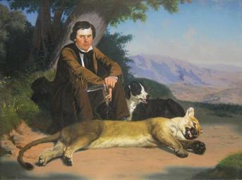 Keywords: 'Peter Quivey and the Mountain Lion' by Charles Christian Nahl.JPG en Peter Quivey and the Mountain Lion oil on canvas painting by Charles Christian Nahl 1858 De Young Museum own Wmpearl 1858 Peter Quivey and the Mountain Lion Cc-zero