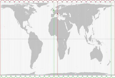 | Keywords: Peters projection, date line in Bering strait.svg Peters projection with corrected date line in the Bering strait 168°45' West of Greenwich proposed by Arno Peters On his world map the easternmost part of Russia is not displayed left of Alaska as it is usually done but also on the right side where it belongs The antipode of Peters' corrected date line is the meridian 11° 15' East of Greenwich traversing the city center of Florence in Italy The drawn out 96 meridians mark quarters of the hour <span style color 00b400; >Green Longitude of Greenwich and the old date line </span> <span style color c80000; >Red Longitude of Florence and Peters date line </span> Peters-Projektion mit korrigierter Datumsgrenze in der Beringstraße 168°45' westlich von Greenwich <small>Diese wurde von Arno Peters vorgeschlagen damit die Ostspitze Russlands auf der Weltkarte nicht wie sonst üblich abgeschnitten und links von Alaska dargestellt wird </small> Die Antipode zu Peters' korrigierter Datumsgrenze ist der Meridian 11° 15' östlich von Greenwich der durch das Stadtzentrum von Florenz in Italien verläuft Die ausgezogenen 96 Meridiane markieren Viertelstunden <span style color 00b400; >Grün Länge von Greenwich und alte Datumsgrenze </span> <span style color c80000; >Rot Länge von Florenz und korrigierte Datumsgrenze in der Beringstraße </span> Own work by uploader http //www wall-maps com/World/PetersProjection-over gif On this Peters map you can see the corrected date line mate2code 2009-03-13 Peters projection blank svg Maps with Gall-Peters projection Global maps centered Florence meridian Prime meridian Bering Strait Hexadecimal time |