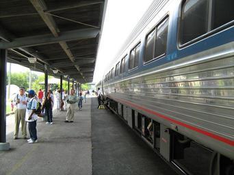 | Keywords: Petersburg VA Amtrak train stop 1.jpg Petersburg Amtrak station in Virginia - view at platform with an Amtrak train stop facing south own 2010-08-27 CZmarlin ” Christopher Ziemnowicz releases all rights but a photo credit would be appreciated if this image is used anywhere other than Wikipedia Please leave a note at Wikipedia http //en wikipedia org/w/index php title User_talk CZmarlin action edit section new here Thank you en I the copyright holder of this work hereby release it into the public domain This applies worldwide thumb left The rear of the station viewed from under the canopy over the platform thumb center View towards the north thumb left Detail of the rear station entrance that looks over the platform and trains thumb center View of the station and platform with Amtrak train heading north thumb left North bound Amtrak train while stopped in Petersburg VA Petersburg Amtrak station Amfleet passenger cars |