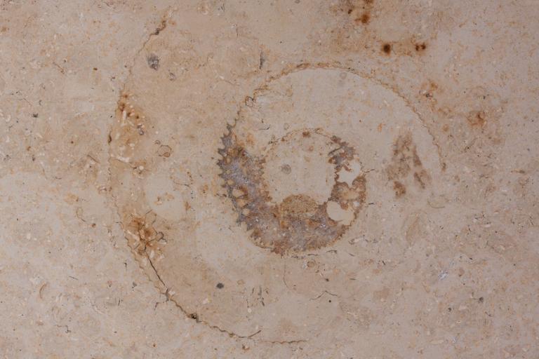Keywords: petrification fossil nautilus fossil solnhofen limestone slabs limestone jura polished surface layered deposits sea upper jurassic quarry cream colors ochre yellow fund background