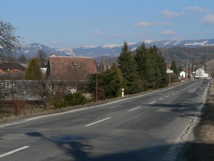 Keywords: PetrovSHrebenem.jpg en Petrov nad Desnou central part of village with main ridge of the Hruby Jesenik mountains Czech republic own Martin Vavrik 2010-03-22 Petrov nad Desnou