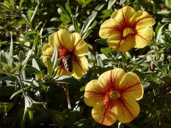 Keywords: petunia gardening flower bee yellow garden orange flower flowers balcony